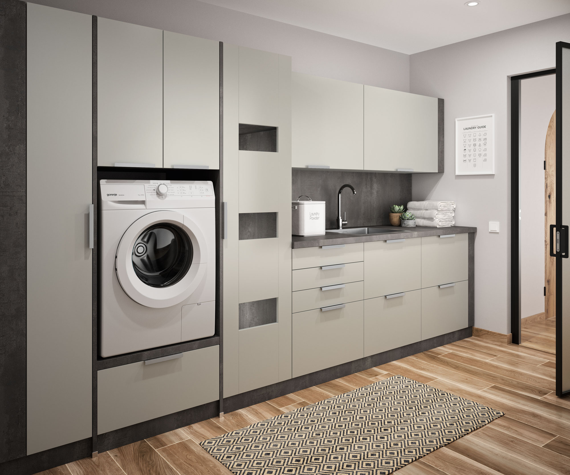 Durch genau durchdachte Arbeitsabläufe und Besonderheiten wie dem Wäschetrennsystem oder der ausziehbaren Arbeitsfläche fällt jeder Handgriff leicht. Alle Wasch- und Putzutensilien sowie Bügelbrett und Staubsauger haben hier ihren Platz und können ordentlich verstaut werden. In so einem Raum fällt es leicht, Ordnung zu halten. Da wird die Pflicht sogar zur Kür.
